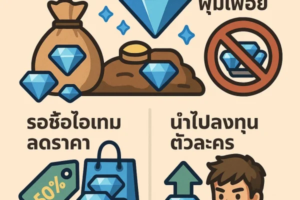 วิธีเก็บเพชร (Diamonds) และการใช้อย่างคุ้มค่าใน Free Fire บทนำ วิธีเก็บเพชร (Diamonds) ในเกม Free Fire “เพชร (Diamonds)” ถือเป็น สกุลเงินพรีเมียม ที่ผู้เล่นทุกคนอยากได้มากที่สุด เพราะสามารถใช้ปลดล็อก สกินปืน, ตัวละคร, สัตว์เลี้ยง, บัตร Elite Pass และกิจกรรมพิเศษต่าง ๆ ได้ เพชรจึงไม่ใช่แค่ของตกแต่ง แต่ยังช่วยให้ผู้เล่นได้เปรียบในสนามรบ คำถามคือ จะเก็บเพชรยังไง และใช้อย่างไรให้คุ้มค่าที่สุด? บทความนี้จะพาคุณเจาะลึกวิธีการสะสมเพชรทั้งฟรีและเติมเงิน เทคนิคการจัดสรร และกลยุทธ์การใช้แบบมือโปร วิธีเก็บเพชรแบบฟรี แม้เพชรส่วนใหญ่ต้องเติมเงิน แต่ก็ยังมีวิธีสะสมแบบฟรีให้ผู้เล่นมือใหม่ 1. อีเวนต์พิเศษ Garena จัดกิจกรรมบ่อย เช่น Login Event, Top-up