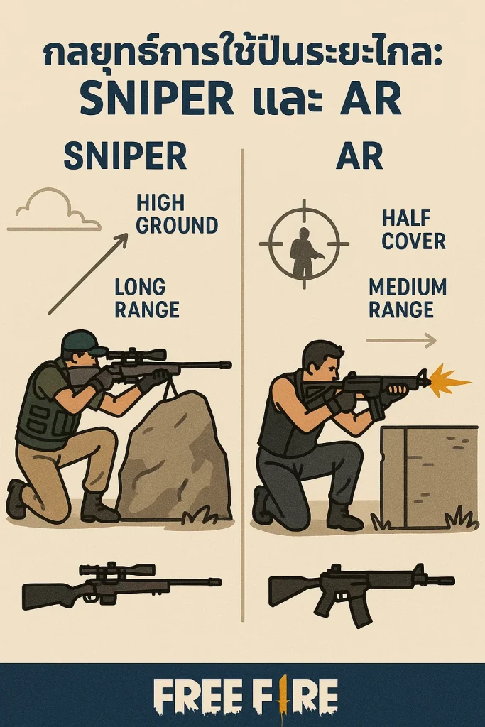 กลยุทธ์การใช้ปืนระยะไกล Sniper และ AR ใน Free Fire